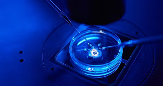 Injection: Using ultra-fine glass needles, the embryologist holds
